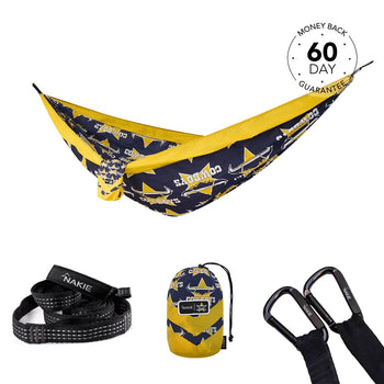 Double Hammock Dimensions: 10' x 6' Weight rating: 500 lbs Weight: 2.2 lbs 2 x Hammock Straps Length: 7'6" per strap Weight rating: 1000 lbs We...