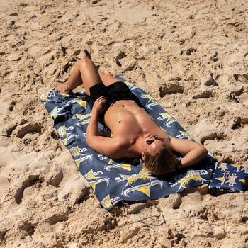 Recycled Sand Free Beach Towel Dimensions: 160cm × 90cm Weight: 740 grams Water Proof Storage Bag Dimensions: 25cm × 20cm