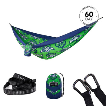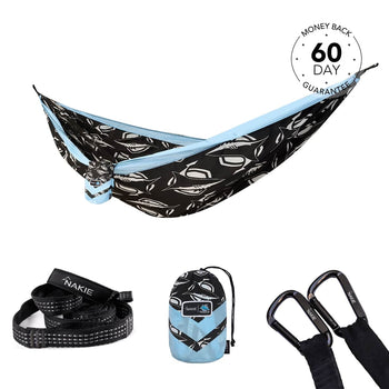 Double Hammock Dimensions: 10' x 6' Weight rating: 500 lbs Weight: 2.2 lbs 2 x Hammock Straps Length: 7'6" per strap Weight rating: 1000 lbs We...