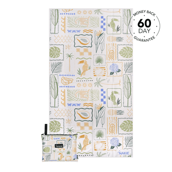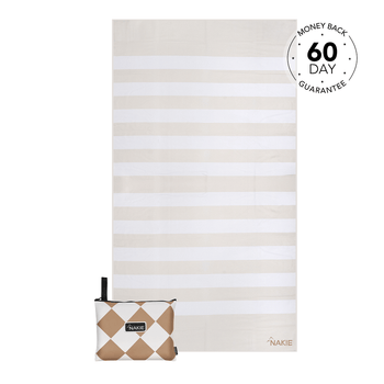Nakie's towels have a unique feel due to their material blend. They combine the smoothness of polyamide with the practicality of recycled plastic, making them comfy while still being great at repelling sand, lightweight and quick dry. Many of our customers are surprised at how good and soft they feel, read our reviews to see what others think!
