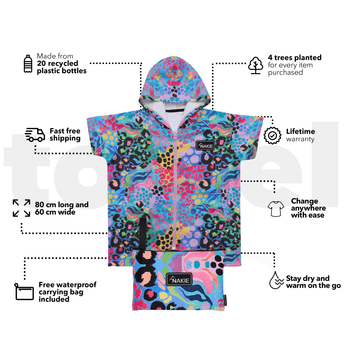 Recycled Sand Free Beach Towel Dimensions: 5’3” x 2’11” Weight: 26oz Water Proof Storage Bag Dimensions: 10”x 8”