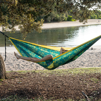 For sure! Our hammocks are designed to be ultra comfortable for a restful overnight sleep. The breathable recycled material will keep you cool through the Summer and you can add a puffy blanket to keep you cosy in cooler weather. They can be combined seamlessly with our bug nets and rain tarps if you’re not a fan of bug bites or camping in rainy weather. Studies have also shown that there are many health benefits of sleeping in a hammock, including deeper sleep, reduced muscle aches and less stress.The best part is you won’t have a stray rock digging into your back all night!