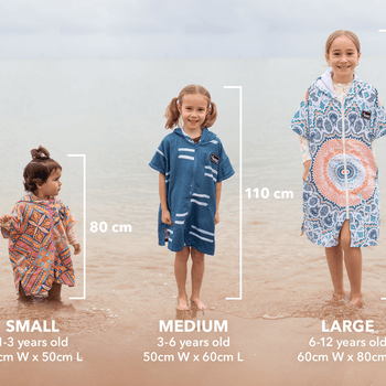 Our hooded towels have an oversized design of 80cm wide by 100cm long to comfortably fit most people. If you are not sure if this is big enough for you, grab a measuring tape and check if you will have enough clearance to be comfortable or check some of the photos in our reviews section!