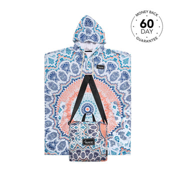 These hooded towels are made using 86% recycled plastic bottles - that's 32 post-consumer bottles saved from landfill and our oceans per towel! We plant four trees for every purchase, are B-corp certified and we are Oeko-Tex Standard 100 certified. Sustainability is more than just a buzzword at Nakie and we are always striving to improve our impact on this incredible planet we all call home.