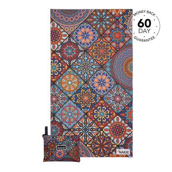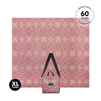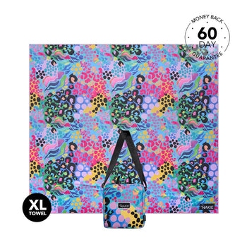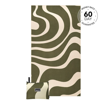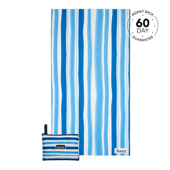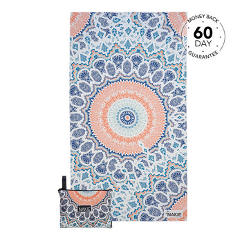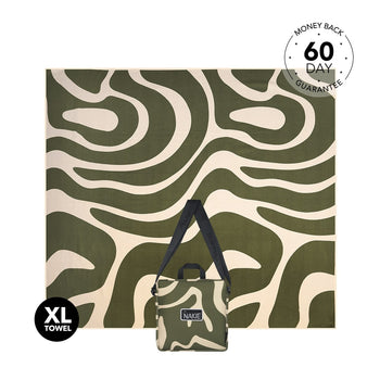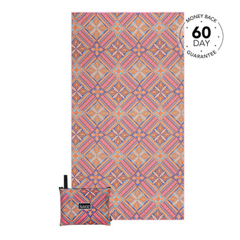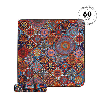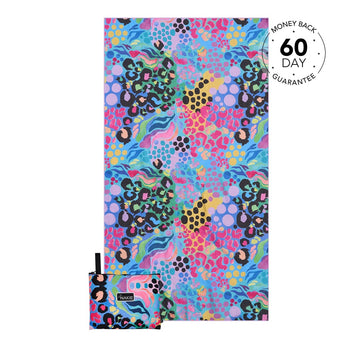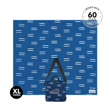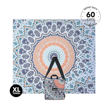 Recycled Sand Free Beach Towel Dimensions: 5’3” x 2’11” Weight: 26oz Water Proof Storage Bag Dimensions: 10”x 8”